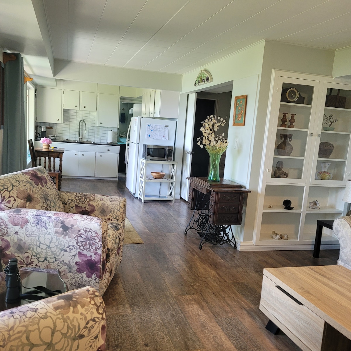 Vi erbjuder 1165 kvm luftkonditionerat utrymme – två queen sovrum med fräscha sängkläder, ett vackert badrum med badkar och walk-in dusch, och gott om utrymme för avkoppling. Modern tvättmaskin, torktumlare, kylskåp, spis och diskmaskin. Du får ett privat täckt däck med uteserveringar och matplatser, samt tillgång till en 6-personers bubbelpool. Det finns kajaker och en kanot du kan använda, om tidvatten tillåter. 50 amp snabb EV-laddare, RV-laddare.