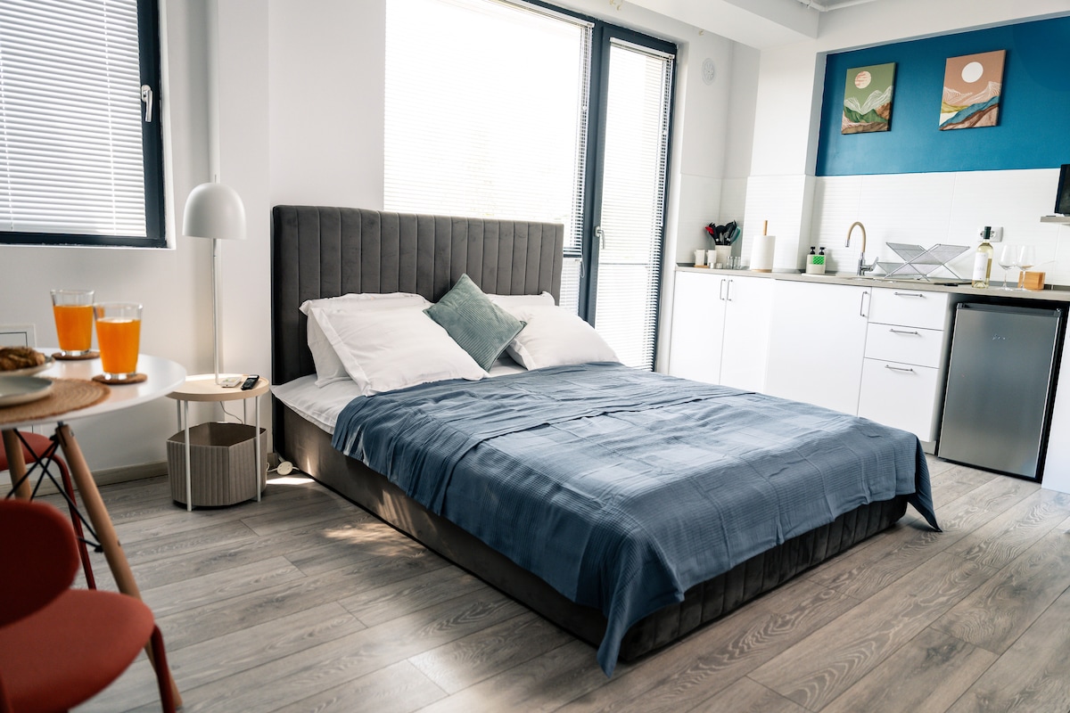 Välkommen till Raluca och Andreis! Vi arbetar heltid och däremellan ägnar vi vår tid åt denna studio, som vi hoppas blir en mysig och trevlig vistelse för din resa till Bukarest. Vi hoppas att du kommer att känna dig som hemma med gratis Netflix, ett fullt utrustat kök, en ren estetik och allt som behövs i närheten. Lägenheten är väl belägen bredvid ett köpcentrum, flera stormarknader och livsmedelsbutiker och en bondemarknad. Härifrån kan du enkelt ta dig via kollektivtrafik till centrum.