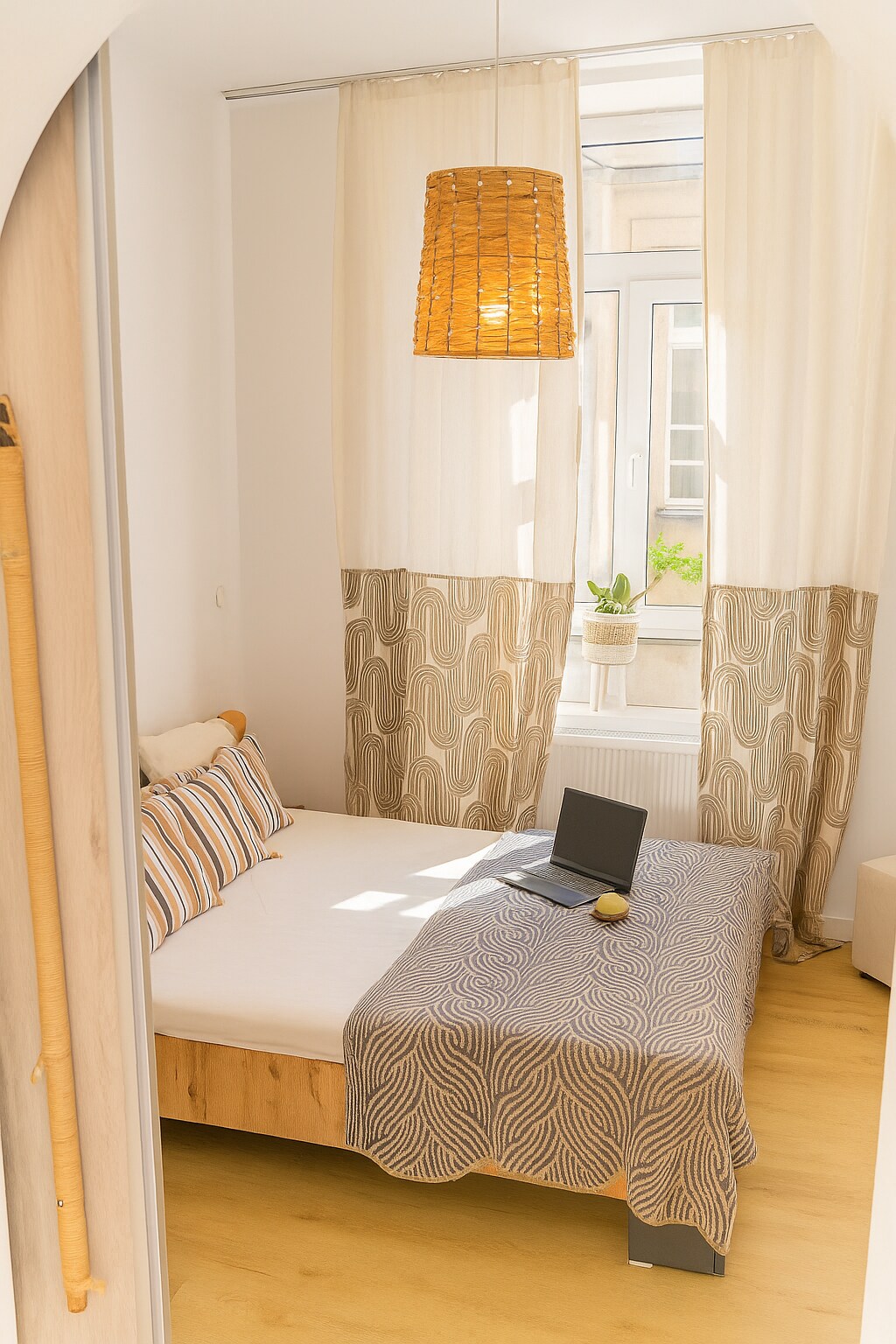 Step into a beautifully curated space where design meets relaxation. This apartment is a haven of calm, thoughtfully styled to offer warmth, character, and modern comfort. Located in Bucharest, between Obor and Iancului metro station (6 min walking distance) Apartment is a newly renovated accommodation unit. Designed with love and enthusiasm this spacious apartment has 1 living room, one bedroom, a dressing space, 1 bathroom with walk-in shower, a fully equipped kitchen and a wonderful balcony.