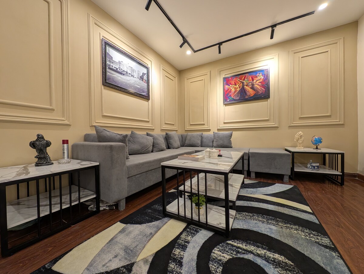 Marrakesh Four. Första Airbnb utformat för utländska pakistanier som återvänder hem. Fönster från golv till tak, plyschmöbler och en lugn neutral palett skapar en varm men internationell levnadsstandard. ☕️ Njut av rymliga lounger, ett modernt kök och lugna sovrum med balkongutsikt Perfekt för familjer som söker både lyx och bekanthet i hjärtat av Pakistan 🇵🇰 Beläget bara 7 minuter från Phase 7 Food Street, kan gästerna njuta av en livlig blandning av lokala och internationella restauranger. 🥘