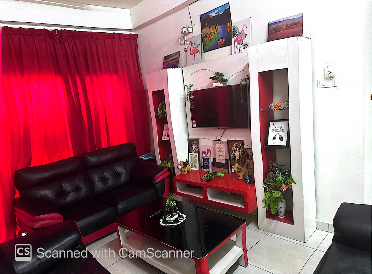 * SOVO-enheter med fullt möblerat skick. * Modern design. *Med 55 tums TV (Netflix med eget konto och TV-appar) * Queen size-säng. * 1 Soffa och bäddsoffa. * Arbetsbord * 300 Mbps WIFI (Tidsstabil WIFI) * Med lätta matlagningsmöjligheter. * 2x fjärrkontroll takfläkt. * Gym * 24 timmars säkerhet och Smart Card-åtkomst * 1 Gratis parkeringsplatser. Andra viktiga saker: Ingen daglig städning. Toalettartiklar (tandkräm och tandborste) och handdukar kommer inte att tillhandahållas.