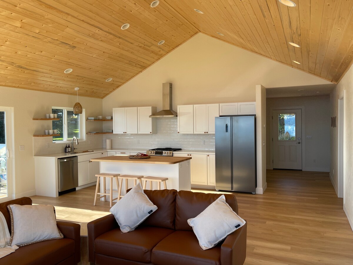 Njut av en vacker sjö- och bergsutsikt i modern stil! Slappna av i vårt lyxiga spa-liknande badrum med badkar, två duschhuvuden och golvvärme, och njut av matlagning i vårt unika retrokök. Endast 2,5 miles till den berömda Homer Spit och minuter från alla bekvämligheter, gallerier, bryggerier, charter, hockeyrink och flygplatsen.