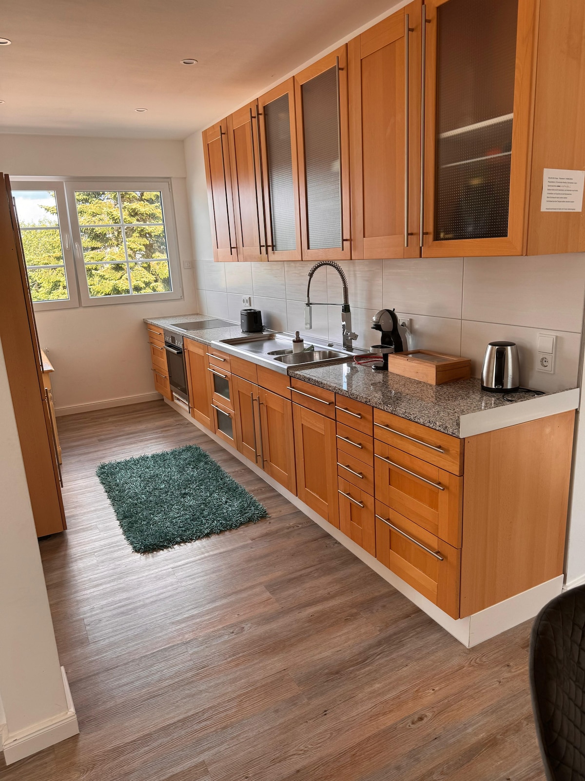Fantastisk, bekvämt möblerad lägenhet i ett lugnt läge i utkanten av staden mitt i vackra Taunus för 2 - 7 personer. Lägenheten ligger på 1:a våningen och är 116 m². - Stort vardagsrum med öppen spis - Inbyggt kök med diskmaskin, ugn, mikrovågsugn och kylskåp med frysfack. CD-spelare med USB-port, barnstol. - Privat terrass - Under matbordets bordsskiva finns ett biljardbord - Sängkläder, handdukar, hårtork, barnsäng, barnstol
