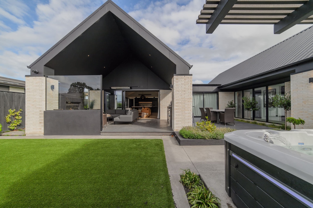 Modern privat oas på 4 hektar i Ohoka, strax norr om Christchurch. Denna familjevänliga tillflyktsort har en 12 m pool, spa och fantastiska områden. Perfekt för sommarsemestrar, golfresor eller vinteraktiviteter. Sovplatser för 8 i 4 rymliga sovrum, med alternativ för upp till 12. Inkluderar 2 vardagsrum, kontor, gym och 3 utomhusutrymmen. Det moderna köket och matplatsen rymmer upp till 12 personer. Barnväsentligheter finns tillgängliga. Bara 22 minuter från flygplatsen, nära butiker, matställen och stränder.