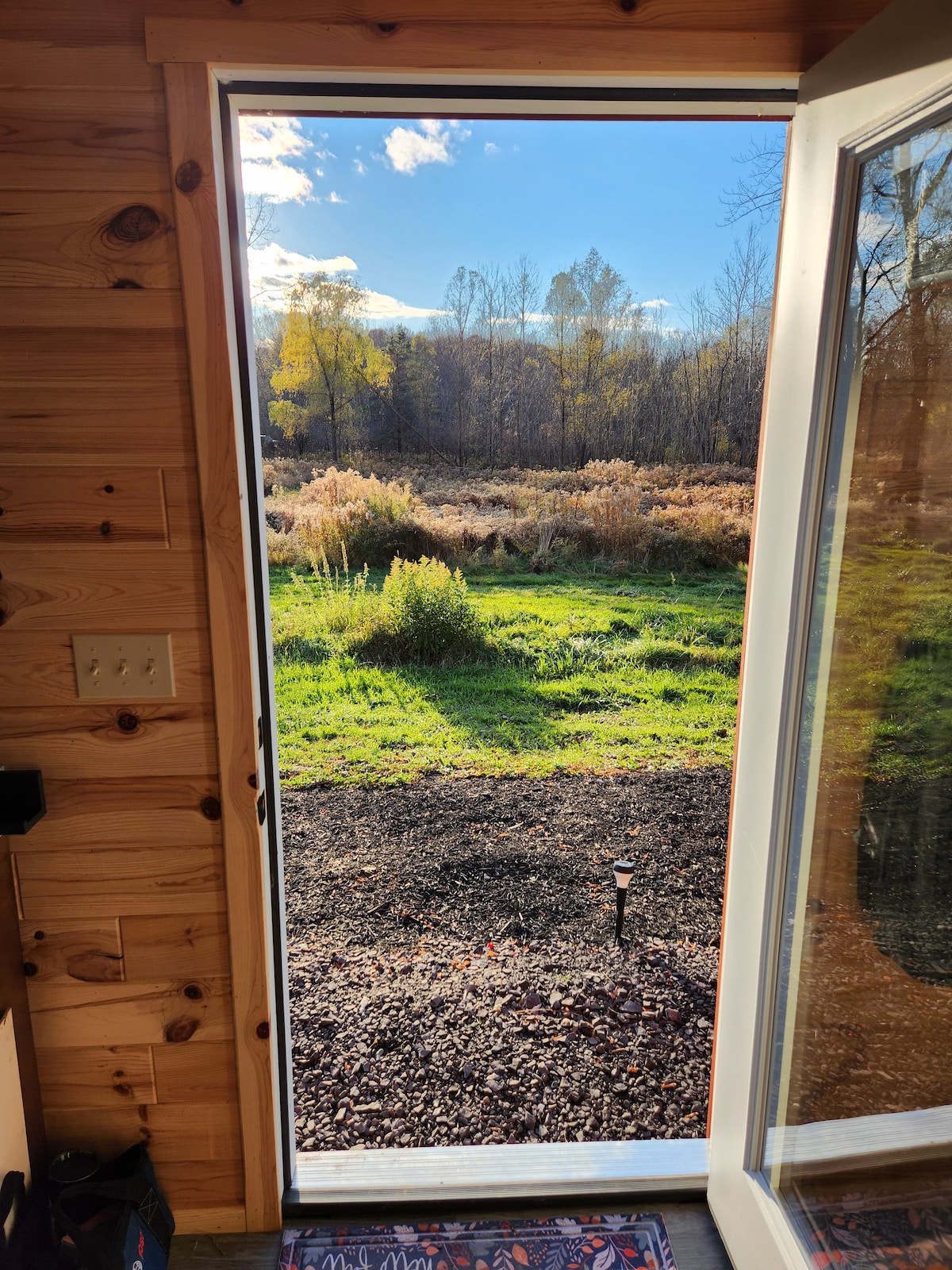 Lägenheten är en lugn, ren och mysig 400 kvm med ett fullt utrustat kök. Badrummet är möblerat med dusch/badkar. Toaletten är en SJÄLVSTÅENDE KOMPOSTERINGSENHET. Sovrummet har en mycket bekväm dubbelsäng. Detta är en aktiv bondgård. Jag har maskiner och jordbruksrelaterad utrustning i närheten av lägenheten. Du kan förvänta dig att ibland höra och se maskineriet röra sig under dagen. Lägenheten har 2 ingångar, det är egen med däck och en genom den anslutna ladan där jag förvarar lite liten utrustning.