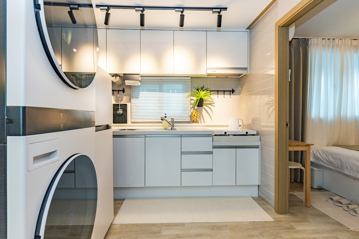 🌺Pop Stay i Seongsu är det bästa stället att koppla av medan du njuter av "Seongsu-dong Hot Place Center och Yeonmujang-gil Seongsu-dong Popup". Som ett utrymme optimerat för familjeresor, långtidsvistelser och sammankomster av vänner som centrum för Seoul-resor, har det det bästa läget 2 minuter från Seongsu Station på tunnelbanelinje 2. Olive Young, närbutik 1 minut bort, Mushinsa, Daerim Warehouse, Cafe Street, Natur, saltbröd, roliga popup-butiker och redigeringsbutiker ligger oftast 1-3 minuter bort. ⚡Det är ett optimalt boende med bekväm transport och lätt att besöka Seoul, såsom Seoul Forest, Hangang, Gangnam, Dongdaemun, Myeongdong, Jongno, etc. 👨👨👧👧 Max 6 gäster – dubbelsäng, rymligt vardagsrum 🌸 Holy Water Pop-up Interior – Den ljusa känslan av Pop-up Stay 🛋️ Seongsu Station 2 minuters promenad – Tunnelbanelinje 2 🏡 Långtidsvistelser välkomna – Automatisk rabatt för 7 nätter eller längre 🛸 Fullt utrustat med hissar – flytta tungt bagage bekvämt ☆ Seongsu-dong Yeonmujang Cafe Street, Seoul Forest, Hangang ligger också inom gångavstånd