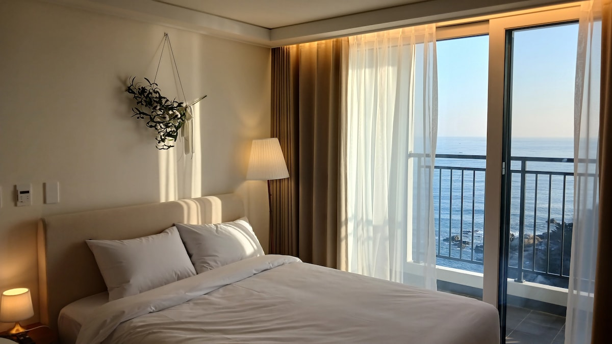 From the terrace, you can fully enjoy the ever-changing beauty of the East Sea, including the sunrise and sunset, with unobstructed ocean view. To enhance your stay, we provide Netflix w/ 65" TV and Harman Kardon Bluetooth speaker. If you connect the game console, you can enjoy over 3,000 nostalgic games. We have various lighting and blankets prepared to create a romantic atmosphere indoors and outdoors at night. For a comfortable sleep, we provide hotel-style bedding and blackout curtains.
