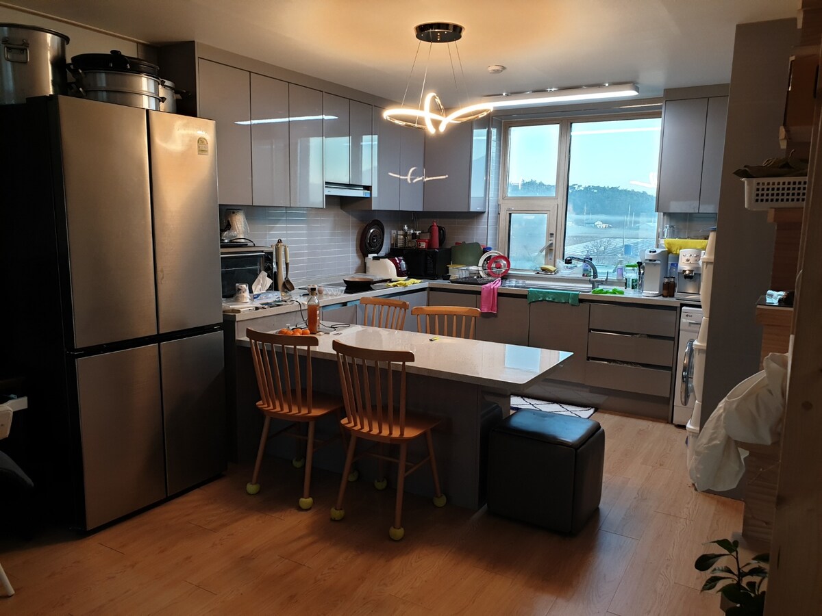 Läget, doc? Läk på en plats med en vacker trädgård!!~~April (hortensia och azalea) Maj (rosenträdgård) Juni-augusti (hortensiaträdgård) September-oktober (krisantemum) utrymme för vila~~!! Succulent kärlek på vintern också, Bawisol Garden~~!! Färsk sashimi och barnens favorit mudflat-upplevelse i Gungpyeong Port där solnedgången är underbar, Gungpyeong Port Amusement Park Det finns Jebudo, där havsvägen hålls, och Jeongok Port där du kan njuta av yachten. Du kan känna värmen av att besöka en lugn landsbygdsmormors hus med öppen utsikt.Det finns ett lekrum med en stor studsmatta och luftstuds så att barnen kan springa fritt, och sandlek är också förberedd på gården, och badminton och basket för vuxna är också möjligt~ Många människor är nöjda som en plats för familjesammankomster. Du kan grilla även på regniga dagar. Hela bottenvåningen i boendet är ett gästrum, och 20 000 KRW per extra person (inklusive antalet personer som bor samma dag) Äldre, funktionsnedsatta och barn får komma in. Det finns en separat ingång från ägarens hus, så det finns inget intrång i privatlivet.