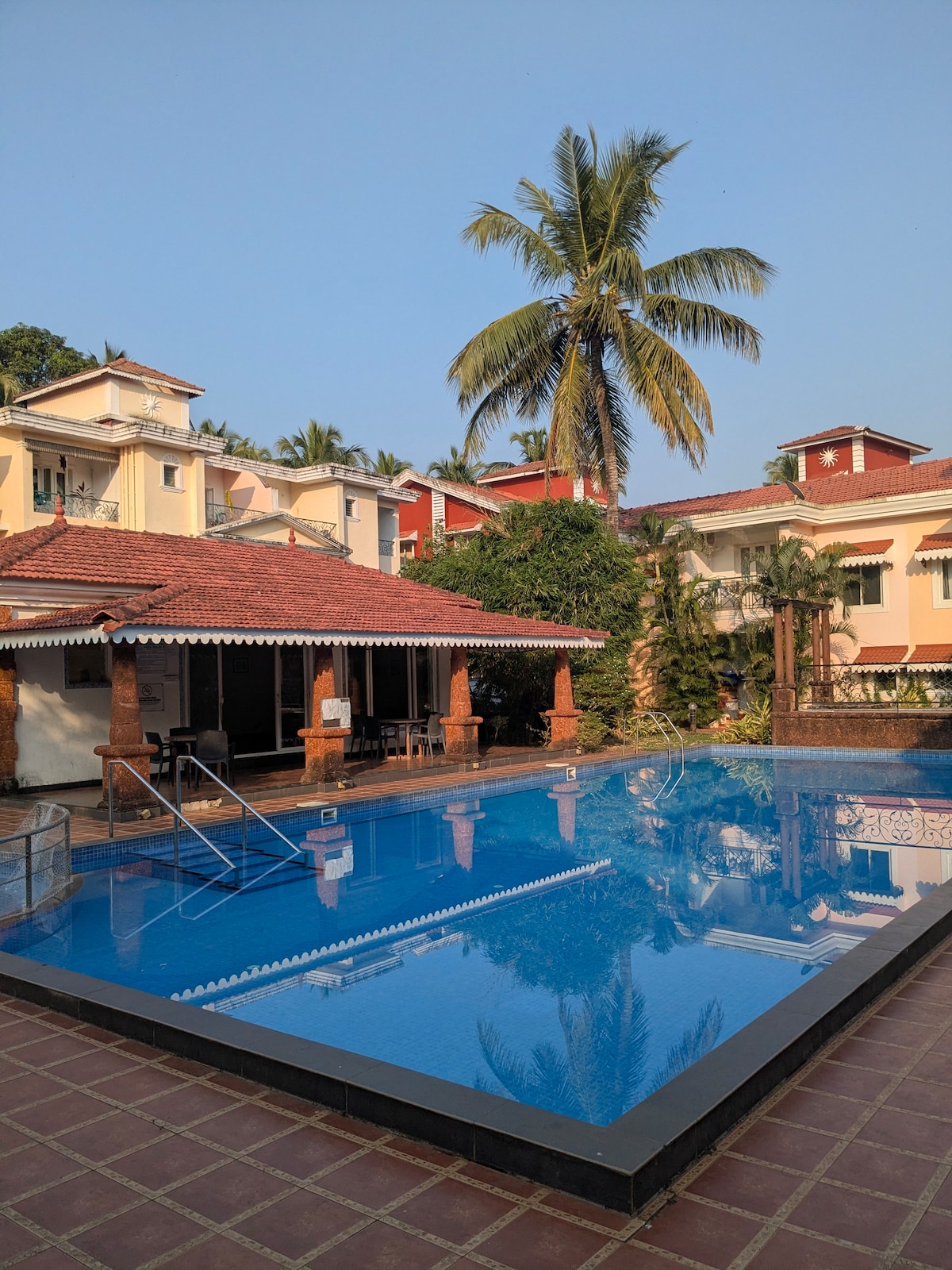 Detta Àr ett lÀgenhetshotell med 24 lÀgenheter med pool, gemensam matplats och lekplats inbÀddad i greener. Din lÀgenhet Àr ca. 720 kvm. Separat sovrum, vardagsrum, kokvrÄ, bÀddsoffa, badrum, toalettartiklar, 2 balkonger. FÀrgen pÄ möbler och interiörer kan variera beroende pÄ tillgÀnglighet. Vi ligger 5/10 minuter med cykel eller bil frÄn de vackra strÀnderna i Majorda, Betalbatim, Colva, Utorda och bÀsta matstÀllen som Martins hörn, Pentagon, Cota Cozinha, Juju, Folga, Jamming Goat.
