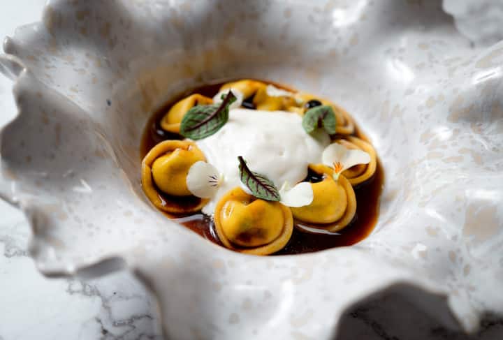 6-rättersmeny inklusive välkomstfingerfood. Du kommer att smaka parmesan flan, rökt burratina, cappellacci, faux scallop, dessert.