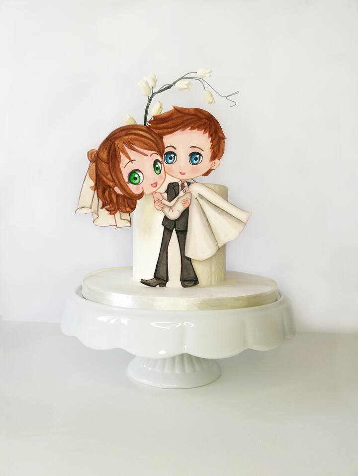 Jag gör bröllopstårtor med personliga dekorationer och meddelanden.