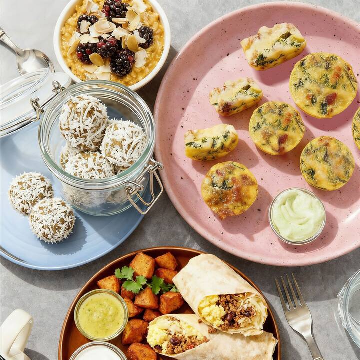 6 objekt. Njut av en vibe-lyftande spridning från kocken Jose Garces – med Bacon & Mozzarella Egg Bites (serveras med grön gudinnasås), Chorizo & Egg Burrito (mexikansk chorizo, äggröra, queso och potatis, serveras med crema och salsa verde), Mango-Coconut Overnight Oats (toppad med björnbär, rostad kokosnöt och mandlar) och Coconut-Matcha Energy Balls (gjord med cashewnötter, agave och dadlar). Inkluderar 1 beställning av Egg Bites, 1 Burrito, 2 havregryn, 2 beställningar av Energy Balls.