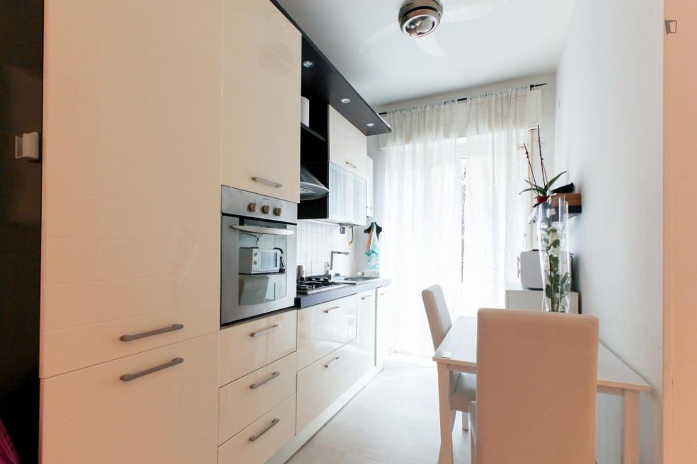 Jag älskar verkligen denna stora tvårumslägenhet på 69 kvm. Jag blev imponerad av dess ljusstyrka, solnedgångarna i väster med utsikt över staden, det rymliga öppenspace med halvö för matlagning. Perfekt för den som söker en plats där man kan känna sig i fred med alla bekvämligheter, samtidigt som man är nära centrum. Inredd i minimalistisk och elegant stil. Bara 5 minuters promenad från tunnelbanestationen M1 Sesto Rondò, på 20 minuter med tunnelbana når du Mailands domkyrka. Det finns ett bageri, en restaurang och butiker precis utanför dörren.