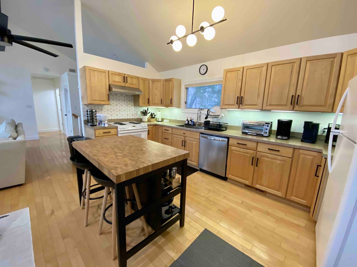 MOUNTAIN MAMA VACATION HOMES & CABINS Looking for a family-friendly getaway? This contemporary cottage has all the indoor and outdoor space you need, with a covered front porch, back deck, large flat yard, and a spacious kitchen. With an indoor fire place and an outdoor fire pit, you can enjoy the flames in any season! This house is steps from lovely Lake Shannondale which is beautiful year round. Work remotely (if you must!) with wifi speeds of 500 Mbps.
