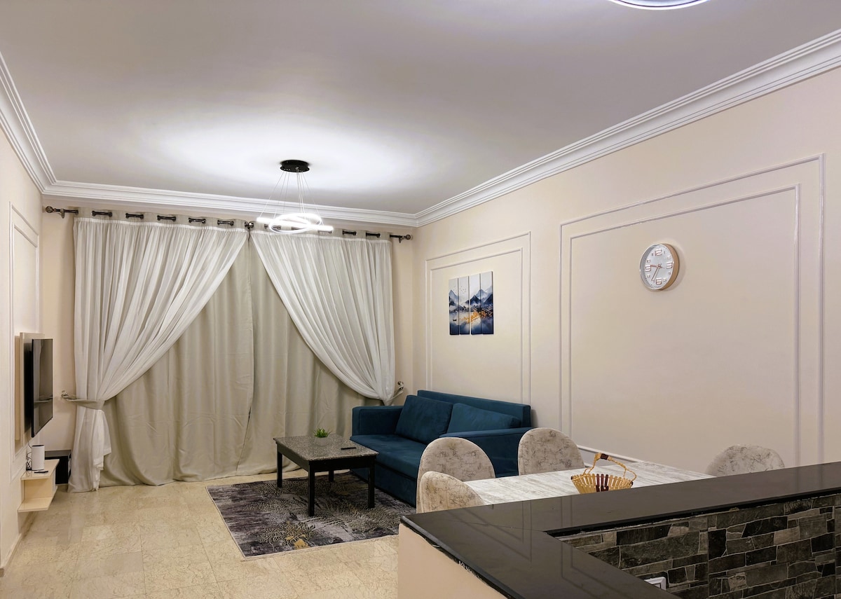 Mysig 1-rumslägenhet i hjärtat av Hadaba, Sharm El Sheikh. Bottenvåning med 2 balkonger, höghastighets WiFi, A/Cs, TV, bäddsoffa, tvättmaskin, fullt utrustat kök. Säker villa med parkering. Promenera till butiker, restauranger, gym och transport. Nära sand- och korallstränder. Tillgång till takterrass med vackra solnedgångar. Ingen rökning inomhus! Perfekt för par eller ensamresenärer som söker sol och avkoppling.
