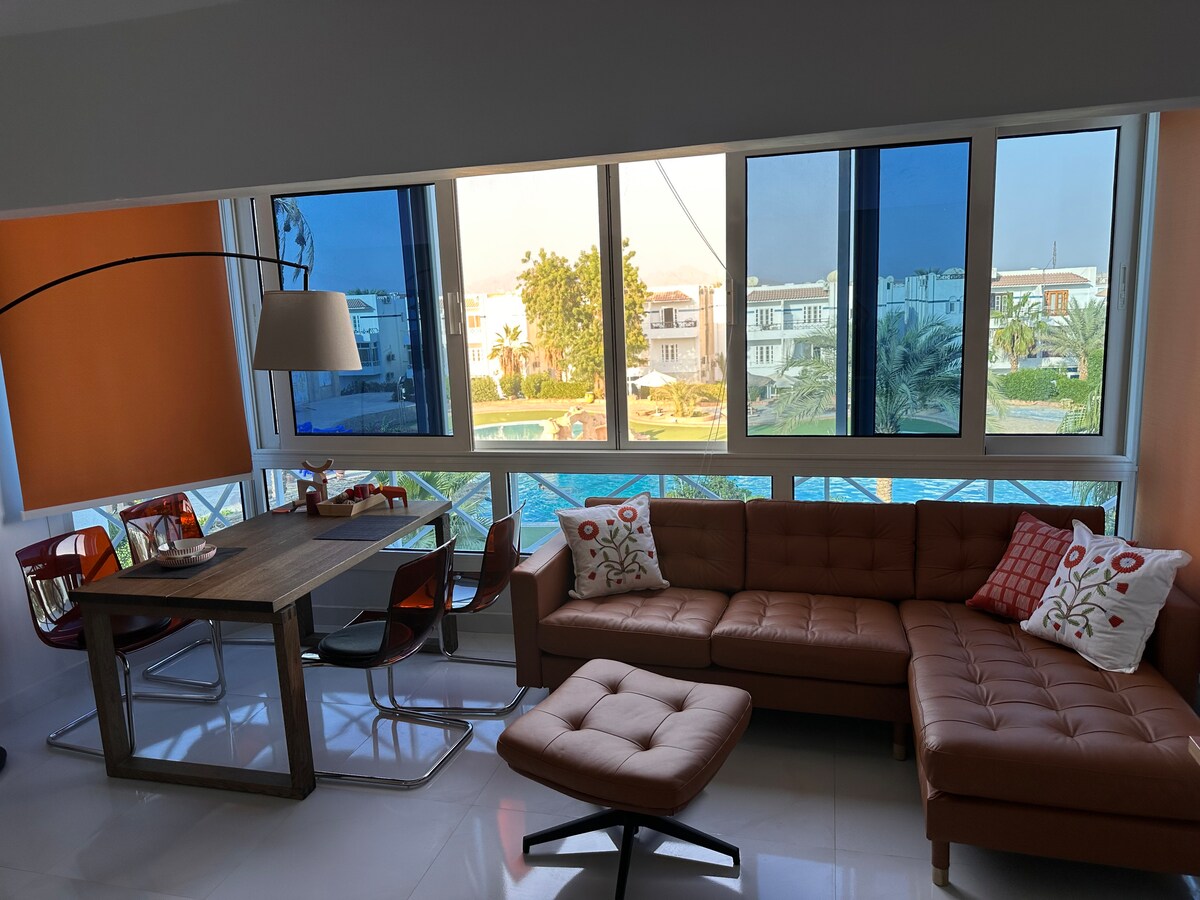 Mycket tyst och bekväm, fullt möblerad lägenhet, på Main Street och så nära Nabq naturreservat lägenheten har 1 sovrum, bra storlek badrum, trevligt lyxigt kök utrustat med allt för köket. Trevligt mysigt loungerum med bekväm soffa, smart tv och WIFI. Fantastisk stor balkong möblerad i beduin-stil. Tvättmaskin Luftkonditionering Strykjärn 4 simbassänger Säkerhet Kan också tillhandahålla transport från och till flygplatsen