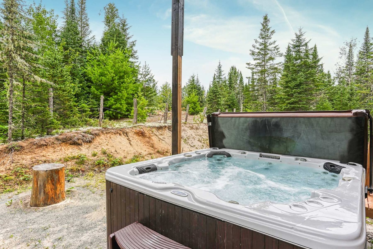 Liten modern varm stuga! Kom och slappna av, var lugn och vila helt! Var omgiven av flera tallar. Denna stuga kan välkomna 2-4 vuxna (+1 barn). Du har WiFi och elektrisk öppen spis. Det är dags att koppla bort från ditt dagliga liv med dess SPA samt en utomhus GAZÉBO för att fullt ut njuta av det medan du tittar på den vackra utsikten över bergen! Fiskare, snöskoteråkare och ATVs är den idealiska platsen för naturälskare. Motorcyklister kommer att njuta av vägen! Tillgång till floden ligger 5 minuters promenad bort! Boka nu