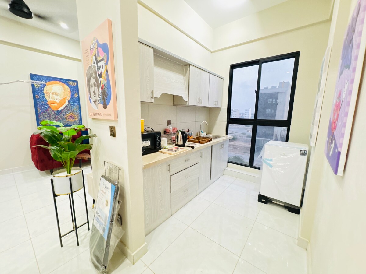 Välkommen till ett elegant boende med 1 sovrum mitt i DHA Phase 6, Karachis mest eftertraktade och säkra adress. Ett stenkast från Clifton Beach 🏝️ och omgivet av Bukhari, Shahbaz och Nishat Commercial – du är aldrig långt från fantastiska caféer ☕, restauranger 🍽️ och shopping. Ett genomtänkt inrett boende med egen balkong, kingsize-säng, modernt kök och utvald inredning – utformat för gäster som inte vill kompromissa med komforten. Perfekt för affärsresenärer, familjer, privat andra hem i Karachi.