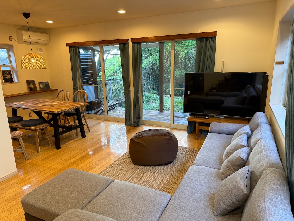 "Blue & Green Hirano" Blå byggnad 1 minuters promenad till trappan till Hirano Surf Beach. Du kan kontrollera vågorna från ditt rum eller däck. Koppla av med stjärnskådning och vågor på natten. Glöm stadens liv och rörelse och njut av det extraordinära. (Hirano Beach är en surfstrand, så badning är inte tillåtet.Det finns en strand i närheten) Installation av en 100-tums skärmprojektor. Du kan titta på videoinnehåll på den stora skärmen. Det finns också en liten skatepark (lampa) på plats. Det är lite säkert på dagar utan vågor. (skratt) Tillsammans med den Gröna byggnaden i samma lokal rymmer den upp till 10 personer. Du kan gå fram och tillbaka mellan de två byggnaderna på trädäcket, men det är också separerat så att du kan bo med en annan grupp. Välkommen att använda två stora grupper, en byggnad för små grupper, familjer och ensamresenärer. Värden bor inom gångavstånd, så hör av dig om du har några problem. * Det är inte en lyxig anläggning.Det är ett 15 år gammalt enfamiljshus som påverkas av saltskador. ◎Rabatt för längre vistelser 7 dagar eller mer → 20 % rabatt →40 % rabatt för en månad eller längre
