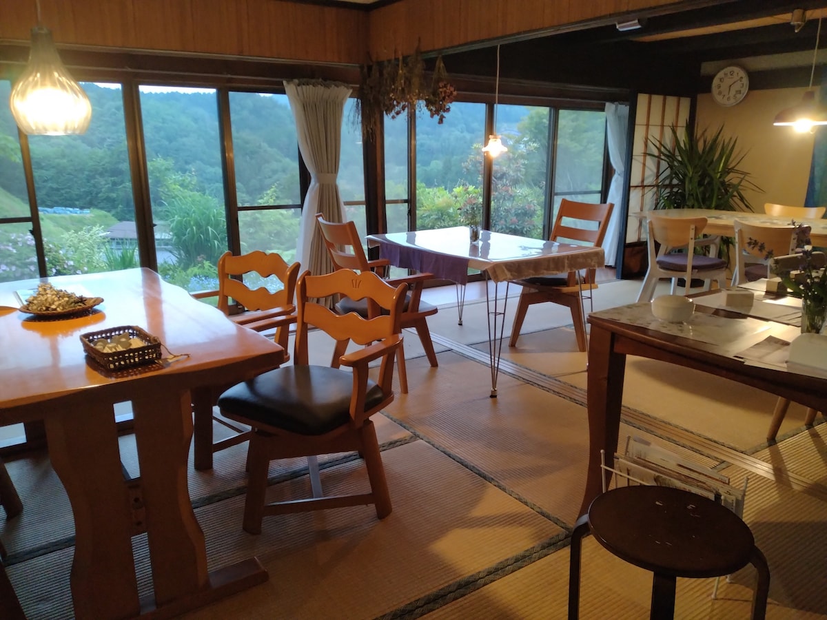 Det 130 år gamla huset renoverades noggrant av värden själv och återupplivade det som ett helt hus att hyra.Genom åren ger balkar, pelare, tatami-sovrum och eldstäder och vedspisar värdshuset en lugn värme och lugn.Fönstren erbjuder utsikt över de centrala Alperna och alla årstider i bergen, och på natten, full av stjärnor.Det finns ett Goemon-bad utomhus där du kan koka vatten med ved, och du kan också uppleva det om du vill.Köket är utrustat med matlagningsredskap och kryddor, och du kan njuta av måltider i eldstaden.Fältet odlar säsongsbetonade grönsaker och ris, och du kan också röra färska ingredienser under skördetiden.Det är en plats för vuxna att bo där du kan lämna ditt dagliga liv och känna dig bekväm även när du inte gör något.