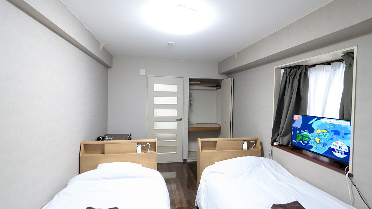 Det är bekvämt för hela familjen att åka vart som helst på detta centralt belägna ställe. Rummet är inrett med två king size-sängar, vilket gör det idealiskt för familjer och kompisgrupper. Avståndet mellan sängarna är bekvämt, och planlösningen ger ett avskilt utrymme.Lämplig för att sova upp till 5 personer. Det öppna köket är utrustat med en induktionsspis, kastruller, stekpannor och porslin, så att du enkelt kan laga hemlagad mat eller enkla japanska rätter. Barbänken förbinder vardagsrummet och matplatsen, vilket gör den perfekt för allt från morgonkaffe till kvällsmåltid. Handfatet och badrummet är utformade separat, så även om flera personer bor tillsammans kan de var och en hålla sin egen takt. Att lyssna på musik via Bluetooth-stereo och ta ett varmt bad på kvällen i Japan är det mest avkopplande ögonblicket under resan. Rummet är utrustat med en projektor som enkelt kan anslutas till populära digitala streamingplattformar. Fullt utrustat med tvättmaskin, luftrenare, strykjärn och en rymlig garderob – vi har allt du behöver. Boendet är precis lagom, perfekt för en person som vill arbeta i lugn och ro vid bardisken, eller för några dagar med vänner eller familj. Vi hade jättetrevligt, och alla var bekväma.