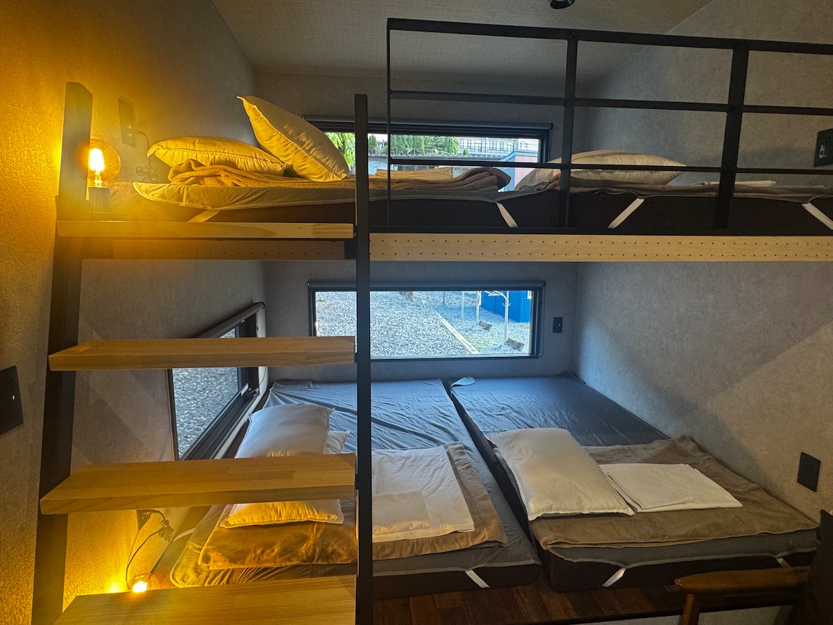 Peace&One is located in the middle of Mt.Shakushi, the sacred mountain of Northern Mt.Fuji area. We use 100% natural mineral spring water for drinking and bathing. We have good sound system cafe&bar. The price include shuttle from Mt.Fuji station, mineral water, ice, breakfast. You can also enjoy the outdoor extreme sauna for 2,000yen per person and BBQ equipment rental for 1,000yen per person. Saturday and day before holiday is difficult to reserve. Looking forward seeing you!