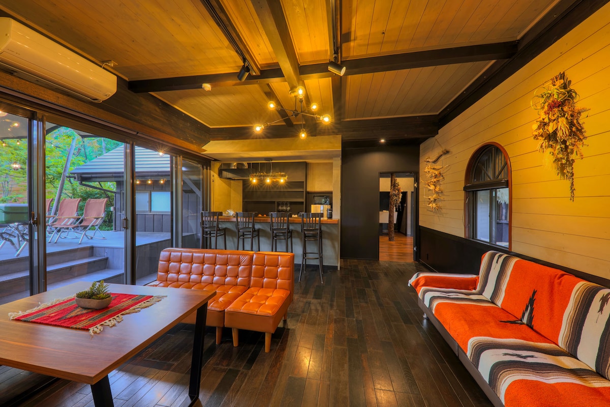 Detta är en privat hyresvilla för att spendera en "natt du bara kan ha nu" med dina vänner, "stanna uppe sent medan du sitter runt ett lägereld i vinterluften". "Privat skogsvilla omgiven av natur" Ett unikt utrymme inbäddat tyst i den stora naturen i Yamanashi prefektur.Lyssna på skogens viskningar och ta dig tid att njuta av denna naturliga aktivitet. Rymlig bastu med utsikt över den klara bäcken (kan rymma upp till 10 personer) Eftersom det är ett avkopplande utrymme, njut av "Totonou" tid tillsammans med dina vänner.Obegränsad tid och inga ytterligare avgifter En stjärnklar himmel Himlen är full av stjärnor och du kan också observera autentiska teleskop.Universums skönhet. Fullt utrustat med ett täckt utrymme Du kan njuta av att grilla även i regnet, så du kan boka utan att oroa dig för vädret. Fullt utrustat med brasa Omge dig med lågor och lyssna på de sprakande ljuden med dina vänner och familj för en fantastisk tid. I rummet omges av dofter av ved Lyxig användning av massivt trä.Fylld med andetag och värme av trä från golv till tak Ett verkligt privat utrymme begränsat till en grupp