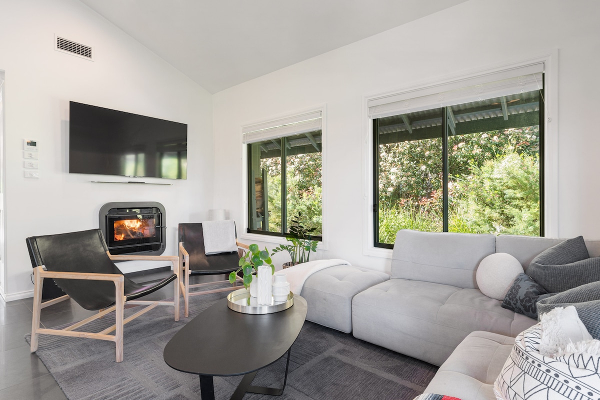Känn den omedelbara avkopplingen medan du njuter av den svepande kustutsikten från detta eleganta boende, bara 90 minuter söder om Sydney och 700 meter till Seven Mile Beach. Öppna bifolden för att känna havsbrisen och förläng utrymmet till ett expansivt däck. Eller mys vid den öppna spisen under kallare månader. Med frukostservering och utomhuslounge kommer du att bli bortskämd med ställen att samlas på. Din hund kan springa fritt i den gräsbevuxna, helt inhägnade trädgården och njuta av tiden på regionens hundvänliga stränder.