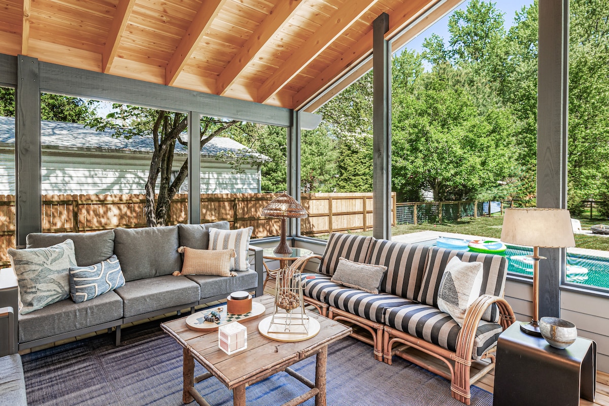 Välkommen till din egen stuga i Harbor Country! Den perfekta helgutflykten från Chicago, vår stuga ligger nära Warren Dunes och bara 15-20 minuters promenad till Lake Michigan. Renoverat och vackert utsett, det blandar vintage charm med moderna uppdateringar! Njut av morgonkaffe på det nya däcket eller den avskärmade verandan, ta ett dopp i den nya bubbelpoolen eller mys bredvid den vedeldade eldstaden. Njut av det perfekta stället att koppla av, vandra, gå på antikviteter, vinprovning och skapa minnen med nära och kära!