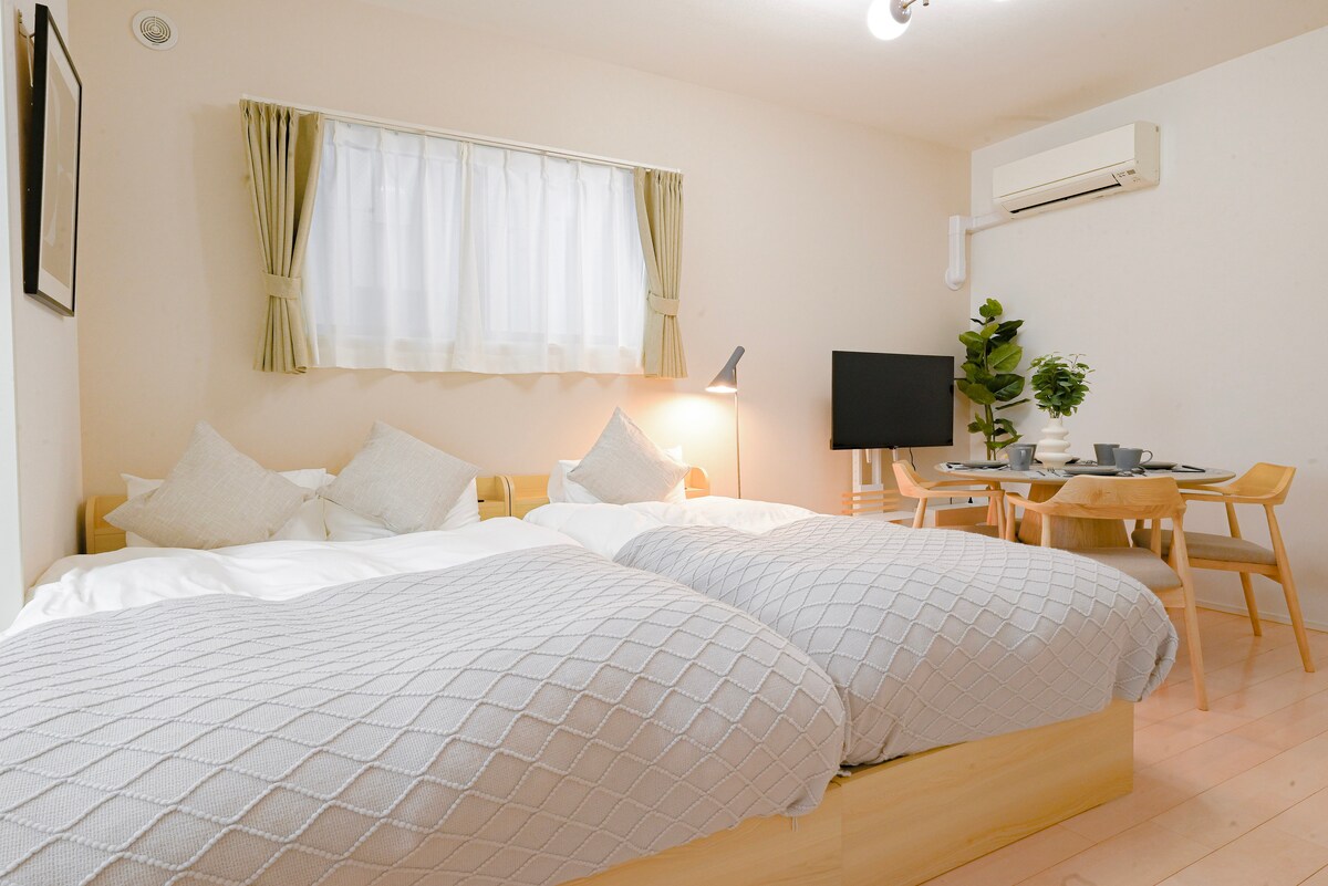 Välkomna hem till oss! Önskar dig en trevlig tid och en underbar resa. Vi har förberett ett enkelt och elegant rum.Det är ett lugnt utrymme där du kan koppla av i en rymlig säng.Med ett utmärkt läge precis vid stationen och full utrustning kan du njuta av en bekväm vistelse oavsett om du bor en kort tid eller en lång tid.Njut av en minnesvärd tid medan du njuter av en bekväm stadsvistelse. Ett nytt boende i Nagoya-området som öppnar i mars 2026. Perfekt för gruppresor med familj och vänner.Tillgång till populära platser som Osu Kannon, Nagoya Port Aquarium och Inuyama Castle är också bra, så du kan njuta av sightseeing och shopping till fullo. Tillgång 3 minuters promenad från Fukiage-stationen på Sakuradori-tunnelbanelinjen. Att ta sig till Nagoya Station och stora turistmål är också smidigt. Om rummet Den rymmer upp till 5 personer. Rekommenderas för familjeresor, vänner och par. 2 dubbelsängar 1 enkelsäng [In- och utcheckning] Tyvärr accepterar vi inte tidig incheckning eller sen utcheckning. Vi ser fram emot ditt besök.