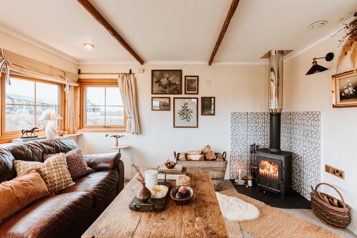 Handla ljudet av staden för ljudet av livet på gården. Vår lilla stuga har allt du behöver för att komma iväg för några dagar i naturen för att ladda batterierna. Njut av en bekväm sittplats på den täckta verandan när du koppar av och njuter av den morgonkoppen kaffe eller ta en promenad längs några av de många offentliga gångvägarna direkt från stugdörren. På kvällen kan du ta en kort promenad genom fältet till vårt eldstadsområde för att titta på solnedgången under den enorma eken. Gäster kan slå upp ett tält.
