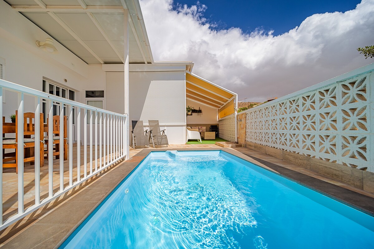 Detta hus ligger inuti en Banana Plantation & Little Group of Houses som Star är en "Verkligen uppvärmd" pool idealisk för simning, eftersom dess storlek är 13 m x 5 m. På södra Teneriffa har denna bananplantage funnits i mer än 100 år. Poolen delas med några fler hus. Det finns också en grillplats och läsrum nära den gemensamma poolen. Gratis mineralvatten + källvattendispenser. En ny gäst nämnde: "du kan gå och utforska bananplantagen fritt: det är en overklig upplevelse".