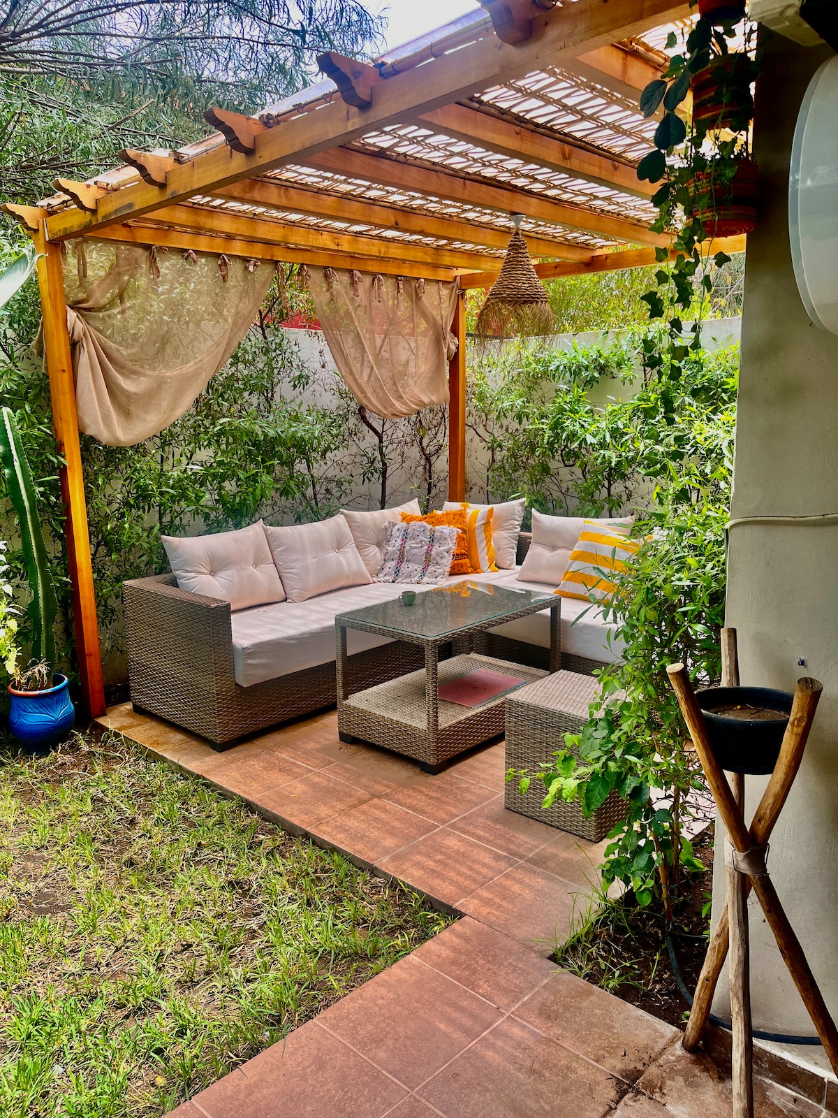 Luftkonditionerad lägenhet inredd med omsorg, perfekt för att njuta av solen och de vackra stränderna i Sidi Rahal, 50 minuter från Casablancas flygplats. ☀️Det bästa med denna egendom? En privat trädgård på 40 m2 inredd för att njuta av ditt morgonkaffe eller lunch med familjen! 🛜IPTV + Fiber Alla bekvämligheter finns i närheten: kaféer, bageri, BIM-minimarknad, apotek ... Säker bostad med vakt, 2 pooler och lekplats. Privat tillgång till stranden. Gratis parkering
