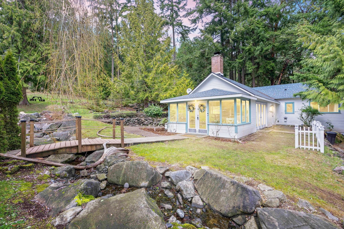 Denna förtrollade skogsflykt kommer att ge den lugnande miljön din själ längtar efter! Från det vackra vattenfallet och bäcken som omger fastigheten, till vattenutsikten över Puget Sound, fem hektar att utforska, och bara en snabb fridfull promenad ner till stranden med användning av kajaker och paddelbrädor...denna fastighet är redo för dig att komma och koppla av och njuta! Läget är utmärkt för att utforska i vilken riktning som helst från enkel tillgång till Seattle Ferries, Military Bases, Hood Canal och Olympic National Forest.