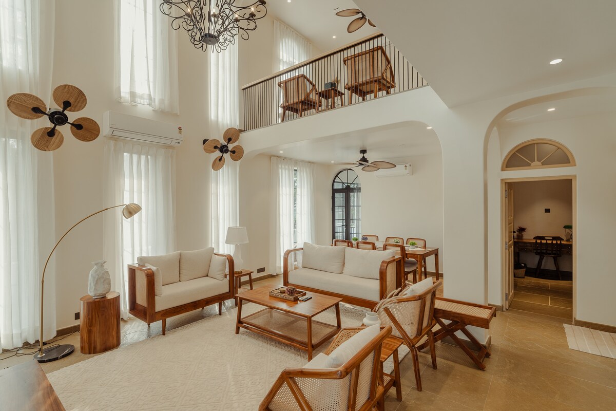 En arkitektonisk under, denna unika 5bhk villa med egen pool ligger mitt i hjärtat av Calangute. Den fantastiska interiören transporterar dig till ett magiskt utrymme. Nära till marknader, stranden och alla hotspots i norra Goa. Ett perfekt semestermål för alla grupper av vänner eller familj. En bra wifi-anslutning, ett par skrivbord, se till att du kan wfh om så önskas. Vi ändrade kontot, men villan och värden förblir desamma som visas i skärmdumpar av våra tidigare kontonomdömen.