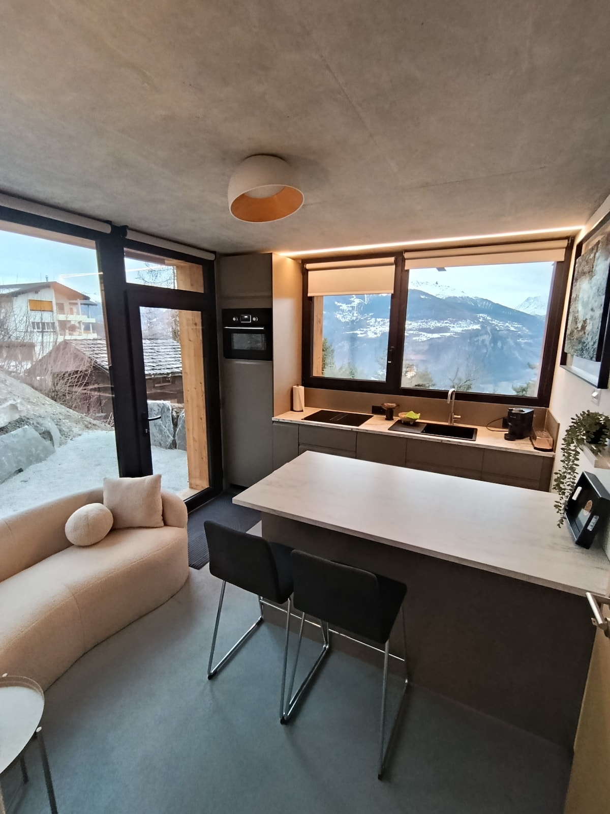 Appartement très cosy et tout confort, dans un immeuble situé aux Collons à 1800 mètres d’altitude dans le Val d’Hérens, sur le domaine skiable Verbier-Domaine des 4 Vallées. Logement 2 pièces avec cuisine toute équipée, 4 plaques à induction, grand frigo, machine à café et lave-vaisselle. Séjour composé d’un coin salon avec canapé convertible double (140x200), TV, cheminée et d’un coin à manger. Chambre à coucher avec lit double (160x200), literie de qualité. Balcon avec magnifique vue.