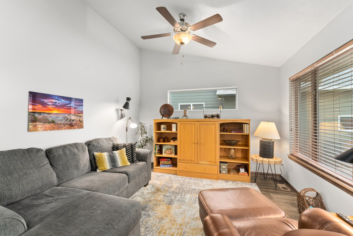 Välkommen till ditt fridfulla Southside retreat! Denna 1 488 kvm stora ranch erbjuder komfort och bekvämlighet med 2 sovrum med kingsize-sängar, 2 badrum och en affärssvit med två enkelsängar och Wi-Fi. Njut av ett mysigt vardagsrum med 65-tums TV, inhägnad trädgård, däck och 2-stall garage. Hundar välkomna (max 2; se regler under "Andra detaljer att notera"). Sover 5 max — 5:e gäst + 50 USD/natt. Perfekt för familjer, proffs och resenärer som söker lugn avkoppling nära Sioux Falls attraktioner.