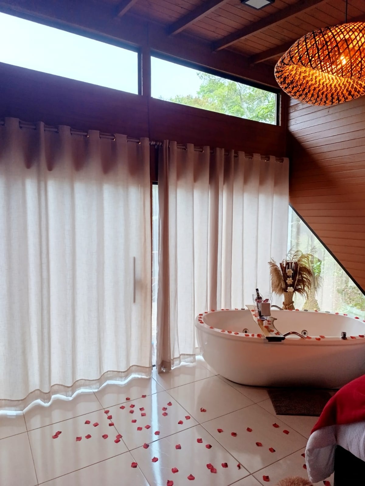 Lugnt läge mitt i naturen, mer isolerat, landsbygd, perfekt för den som söker lugn och ro. Beläget på en privat egendom bara 3 km från centrum och Garopabas centrala strand, med enkel tillgång och en bra väg. Stugan har ett sovrum med bubbelpool, en dubbelsäng, luftkonditionering och 50" Smart TV. Kök utrustat med alla nödvändiga redskap. Det har också en privat grillplats. Koppla av i detta lugna och eleganta utrymme.