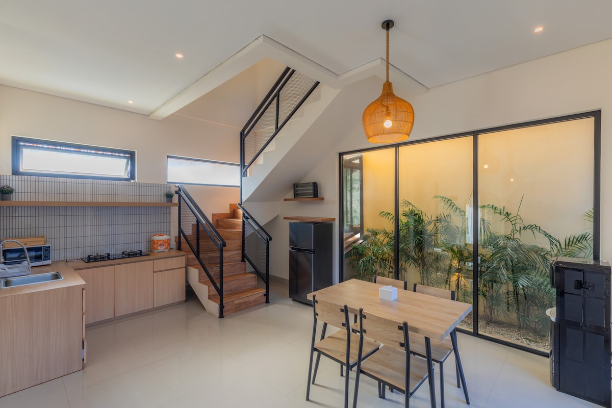 Välkommen till din lugna semester! Detta rymliga och fridfulla utrymme har vacker Japandi-design, som kombinerar modern minimalism med naturlig värme. Njut av den lugnande Zen-atmosfären som bjuder in dig att koppla av och glömma dina bekymmer. Med gott om utrymme att koppla av är det perfekt för familjer som samlas eller som en lugn transitstopp under dina resor. Oavsett om du är här för kvalitetstid med nära och kära eller en avkopplande vistelse, erbjuder denna tillflyktsort den perfekta flykten från liv och rörelse.