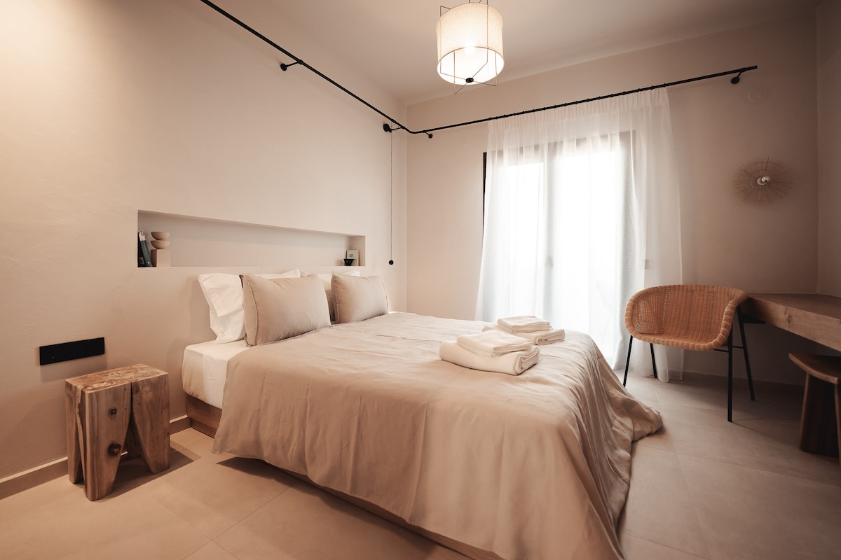 Andas in Grekland och fördjupa dig i Halkidikis majestätiska skönhet på ALKEA på Moles Kalives. En lägenhet omsorgsfullt kuraterad för dem som söker en lugn tillflyktsort på en av de mest oförstörda stränderna i Halkidiki. Ett fridfullt reservat för den kräsna gästen som värdesätter lugn och lyx.