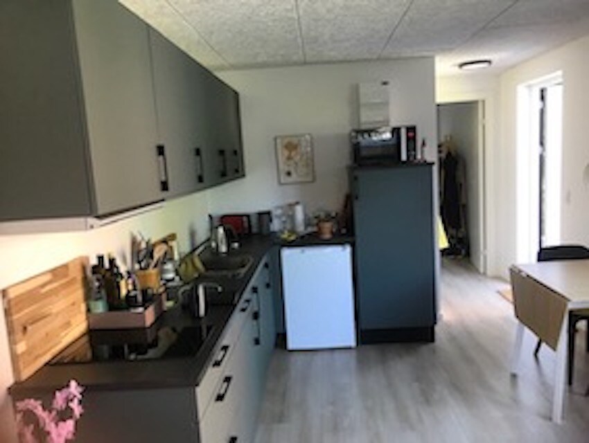 Du får din egen ingång till lägenheten. Från sovrummet ingång till TV-rummet/kök med möjlighet till bädd för 2 personer på bäddsoffan. Från TV-rummet finns det tillgång till eget badrum/toalett. Det kommer att finnas möjlighet att förvara saker i kylskåp med liten frys. Det finns en vattenkokare så att du kan göra kaffe och te. I pentryt finns 1 mobil spis och 2 små kastruller samt 1 ugn Det är inte tillåtet att steka i rummet. Kalla drycker kan köpas för 5 kr och vin 35 kr. Betala kontant eller med MobilePay.