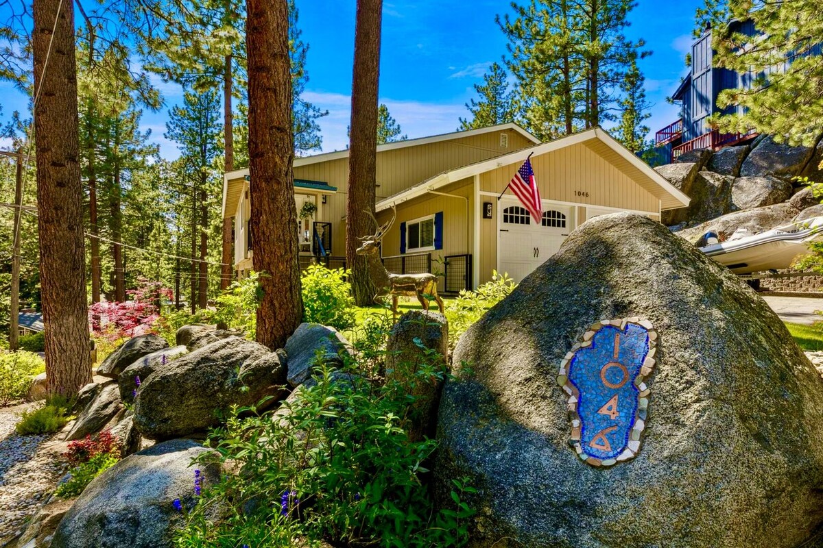 En perfekt plats för arbete + lek i Tahoe. Denna exklusiva alpstuga ligger kvarter från stranden och spår, nära skidåkning - bra läge med självincheckning. Boendet är perfekt för 4 personer med ett fullt utrustat kök, WiFi och Smart TV. Njut av Tahoe som bor i ett öppet kök/vardagsrum med en mysig öppen spis. På nedervåningen ingår: 1 Q BR+ 1 badrum, Tvättmaskin/torktumlare, loft: 1 Q BD. 2 bil PKG, uteservering. Evaporative Air Cooler & fans tillhandahålls. Observera - inga laddningsstationer för elbilar inomhus, men i närheten finns tillgängliga.