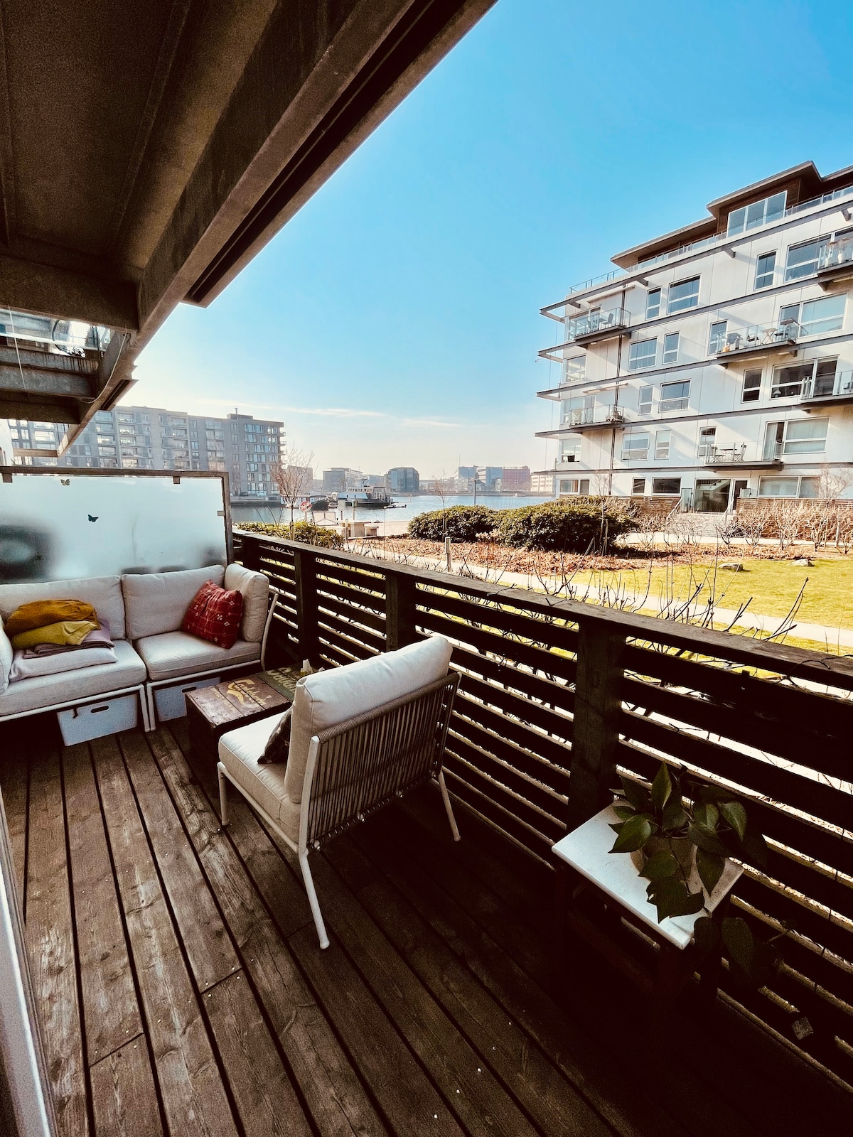 Njut av min härliga ljusa och moderna lägenhet med nordisk inredning. Lägenheten har ett sovrum med en dubbelsäng, ett rum med en säng och en privat terrass. Det finns en gemensam innergård. Lägenheten ligger vid vattnet och det finns gott om badmöjligheter. Vid byggnaden kan du ta vattenbussen och uppleva Köpenhamn från vattensidan. Lägenheten har stormarknader, butiker, restauranger, bagerier och transport runt hörnet. 11 min. från CPH centrum. Ni har lägenheten för er själva.