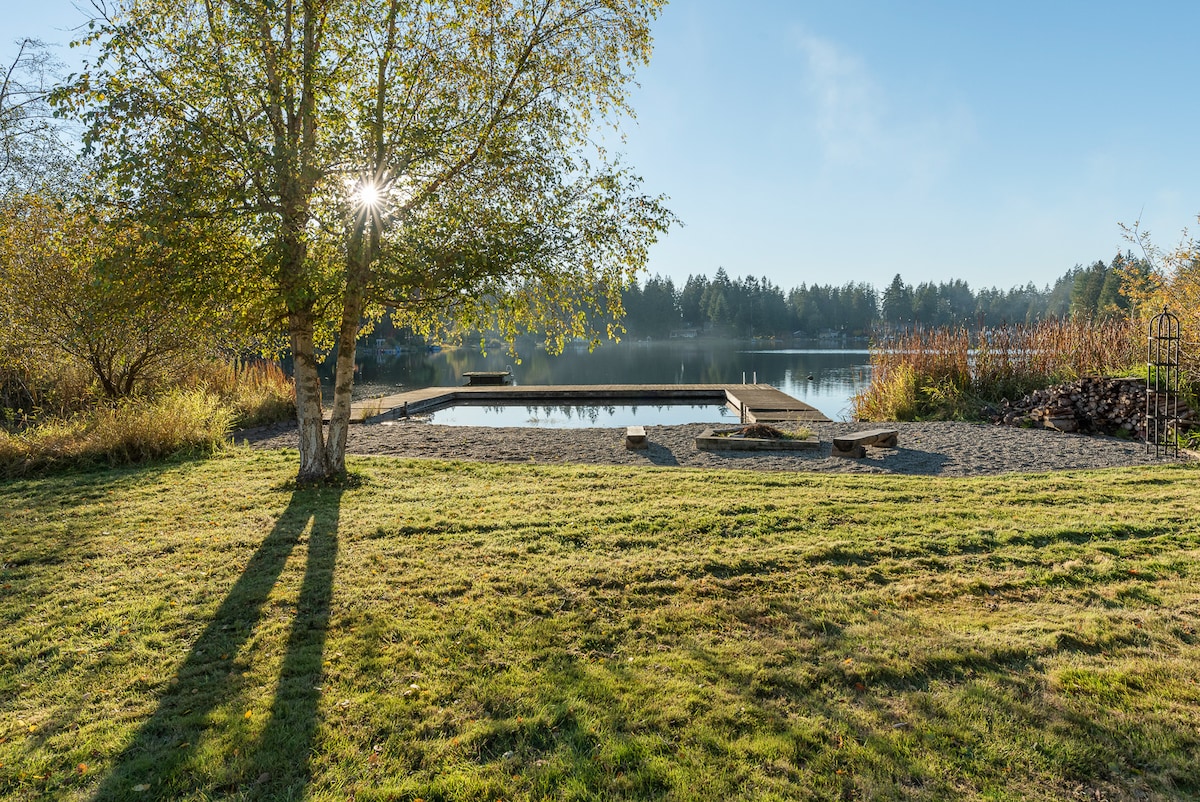 Fly på sjön med vår varma rustika vedeldade bastu precis vid vattnet! Regniga dagar är extra speciella i den privata bubbelpoolen med utsikt över sjön. Jaw dropping soluppgång/uppsättningar från stort däck, kök och bortom. Perfekt för spa-semester, återföreningar, familjeminnen, romantisk semester, avkoppling, distansarbete. Ett fågelälskares paradis, havsörnar och hökar svävar! Privat brygga, simning, fisk/båt. Oändliga saker att göra hemma Direkt PÅ sjön, erbjuder fridens sjö och lätt att komma åt. Nära butiker och TulalipCasino