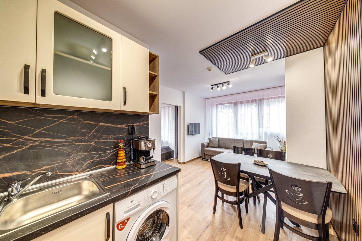 Välkommen till vår nya mysiga enrumslägenhet på sjätte våningen i Stream Resort i Pamporovo, med fantastisk utsikt över Snezhanka-tornet och Rodopibergen. Perfekt för en avkopplande fjällsemester under alla årstider. Ligger på sjätte våningen med hiss. Lägenheten är fullt utrustad med allt du behöver för en bekväm vistelse, perfekt för par, familjer eller vänner som besöker skidorten. Gäster har tillgång till semesteranläggningens spa, inomhuspool, bastu och gratis parkering.