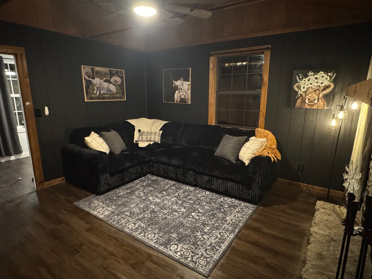 Vårt pensionat Retreat är helt separat och privat från vårt hem, men på samma fastighet. Vi är 35 minuter från Nashville. Vår fantastiska 1000 kvm stora altan (mestadels täckt) med takfläktar har utsikt över floden som vår trädgård ligger vid. På altanen finns en öppen spis, barnens gungor och sandlåda. Vår svit är möblerad med en dubbelsäng, en fönsterplats, en kokvrå och en liten matplats. Det finns ett mysigt 2:a sovrum med en dubbelsäng, liten garderob och stol. Vi har också en 120" skärm för fantastisk filmtittande.