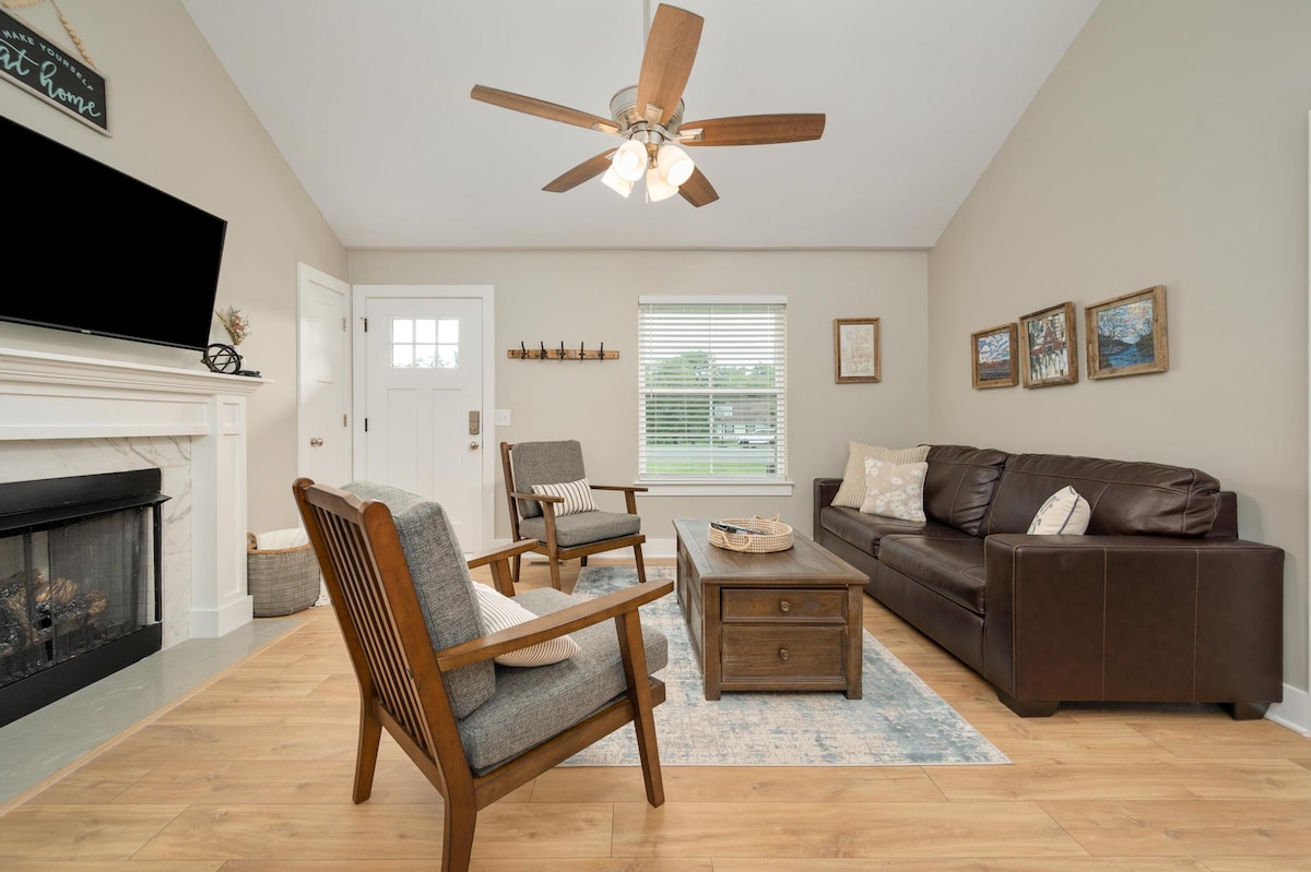 Välkommen till High Tea Cottage, en charmig viktoriansk reträtt på sagobokens gator i historiska centrum Murfreesboro — gå till butiker, restauranger, levande musik och cocktail lounger. Detta boende är perfekt för familjer, vänner, arbetsresor eller en avkopplande flykt och erbjuder bekväma utrymmen för att samlas och varva ner. • 3 sovrum | Sovplats för 8 | 2 badrum • Rymlig salong med öppen spis • Privat bubbelpool, badpool (maj–okt) och eldstad • Inhägnad parkering Kom och njut av tidlös karaktär där historia möter gästfrihet!