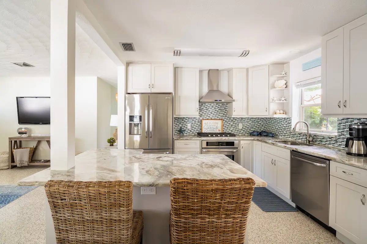 A lovely space to unwind and relax after a busy day whether it is work or play. Awake refreshed and ready for a day exploring South Florida via this clean, sunny home with impressive wrap around views. Head out and wander through the nearby farmers’ market and pick up local ingredients to later craft a meal in the fully stocked kitchen or take the bikes to explore the Emerson Point Preserve conveniently located 5 minutes away.