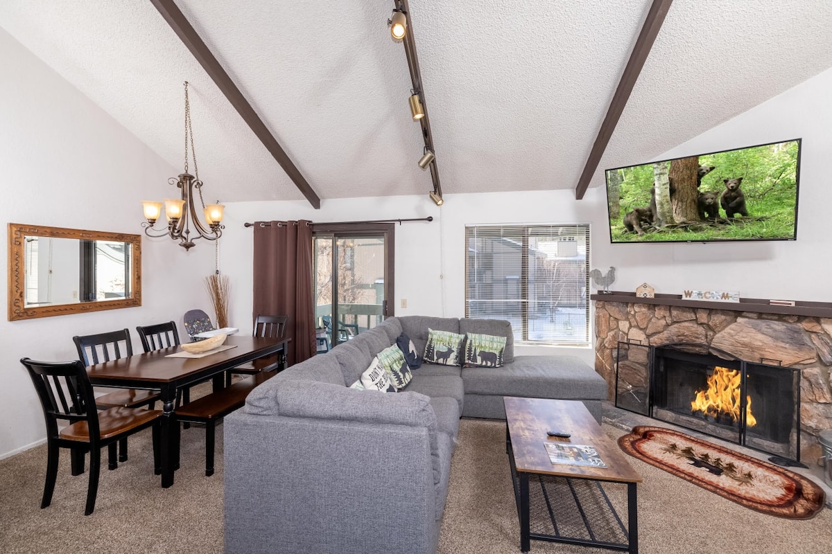 Hitta ditt hem hemifrån i vår mysiga Big Bear-lägenhet, bara en kort 4 minuters promenad till Boulder Bay. Den rustika inredningen med bergstema kommer garanterat att glädja alla. Utforska naturen, från picknick vid sjön i natursköna Boulder Bay Park till fiske, båtliv och vandring. För vinterkul, lek i snön eller besök Snow Summit för skidåkning och snowboard, (4,3 miles bort/11 minuters bilresa) sedan koppla av i året runt uppvärmd jacuzzi. Sommartid, njut av ett uppfriskande dopp i den uppvärmda poolen.