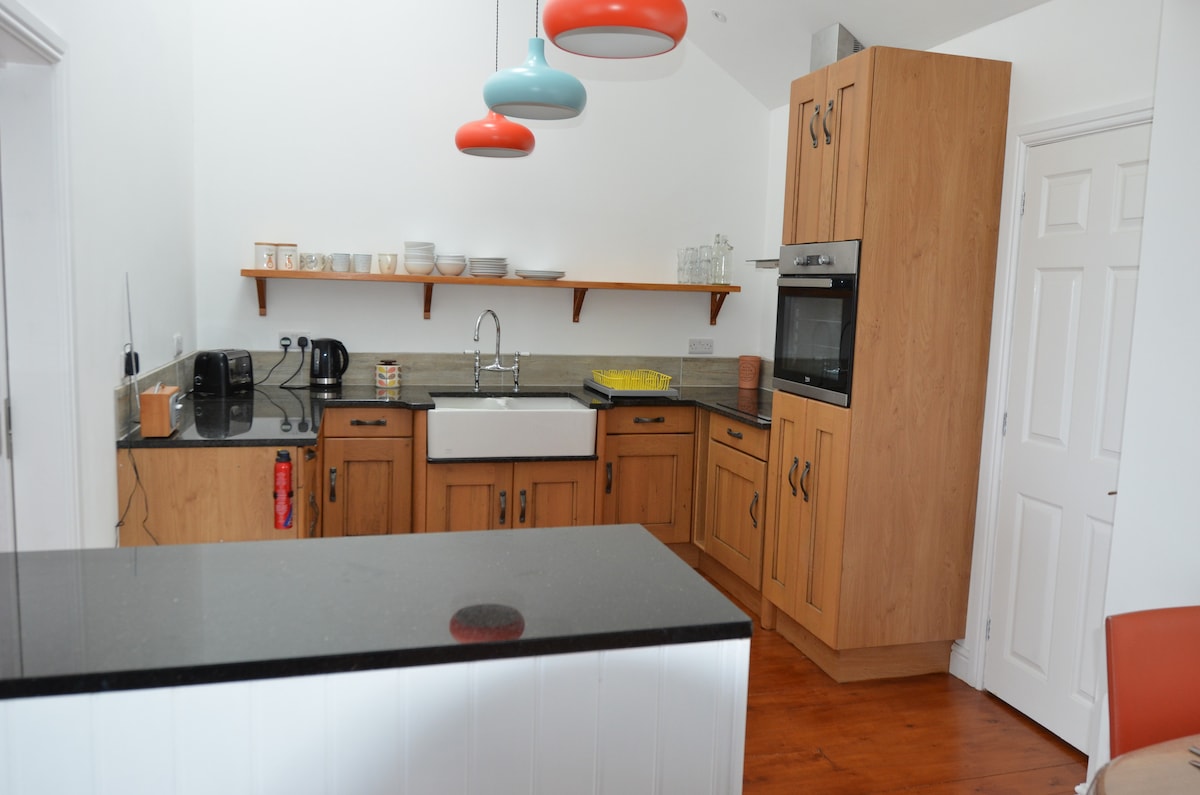 Mycket lugn, kompakt och extremt välutrustad fastighet i utkanten av Snowdonia National Park med enkel tillgång till huvudvägar och bekvämligheter, dvs. butiker, bio etc. massor av ställen att gå och utforska. Stranden ligger bara 5 minuter med bil eller 20 minuters promenad. Självständig och smakfullt inredd till en extremt hög standard med full golvvärme inklusive. Perfekt för friluftsentusiaster. "Inga husdjur" OBSERVERA: Begränsad mobilsignal i lokalerna, "Whats App" & "Messenger" fungerar bra via WiFi.
